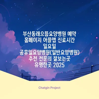 부산동래으뜸요양병원은 예약 홈페이지와 어플리케이션을 통해 쉽게 진료를 예약할 수 있습니다. 이 병원은 전문적인 의료진과 함께 환자 중심의 진료를 알려드려 많은 …