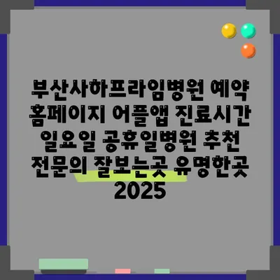 부산사하프라임병원은 2025년에도 많은 환자들에게 사랑받는 곳입니다. 예약 홈페이지와 어플앱을 통해 손쉽게 진료 예약을 할 수 있어 매우 편리합니다. 병원의 진료시간은 …