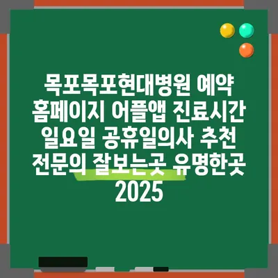 목포목포현대병원 예약 홈페이지와 어플앱은 사용자에게 편리한 진료 예약 서비스를 알려알려드리겠습니다. 정확한 진료시간 정보는 홈페이지에서 확인할 수 있으며, 일요일과 공휴일에도 진료가 …
