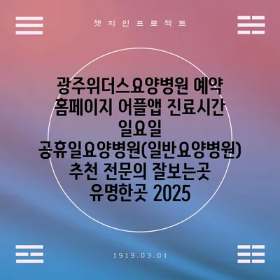 광주위더스요양병원은 예약 홈페이지와 어플앱을 통해 손쉽게 진료 예약이 할 수 있습니다. 이 병원은 일요일과 공휴일에도 운영되어, 필요할 때 언제든지 방문할 …
