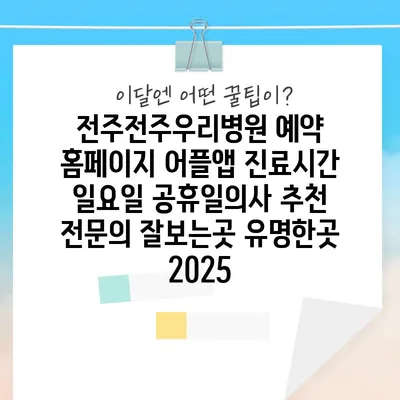 전주전주우리병원은 2025년에도 신뢰할 수 있는 의료 서비스를 알려알려드리겠습니다. 여기서는 예약 홈페이지와 어플앱을 통해 간편하게 진료 예약을 할 수 있으며, 다양한 …