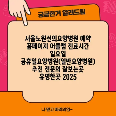 서울노원선의 요양병원 예약 홈페이지와 어플리케이션은 환자와 보호자에게 편리한 진료 서비스를 알려알려드리겠습니다. 특히 일요일 및 공휴일에도 운영되는 일반요양병원을 찾고 계신다면, 이곳에서 …