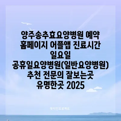 양주송추효요양병원은 2025년에도 많은 환자들에게 사랑받는 요양병원입니다. 특히 예약 홈페이지와 어플앱을 통해 간편하게 예약할 수 있어 편리함을 알려알려드리겠습니다. 진료시간은 주중은 물론 …