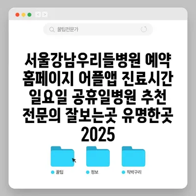 서울강남우리들병원은 예약 홈페이지와 어플을 통해 편리하게 진료를 받을 수 있는 곳입니다. 이 병원은 일요일과 공휴일에도 진료를 알려드려 바쁜 현대인들에게 매우 …