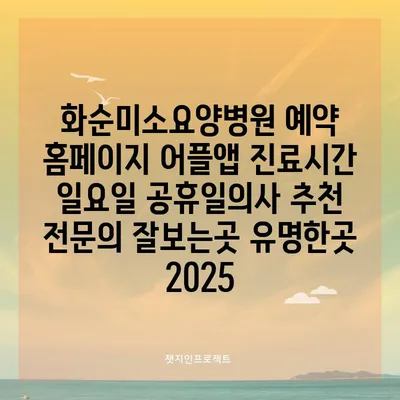 화순미소요양병원은 예약 홈페이지와 어플앱을 통해 편리하게 진료를 받을 수 있는 곳입니다. 이 병원은 주말 및 공휴일에도 진료를 진행하여 환자들이 언제든지 …