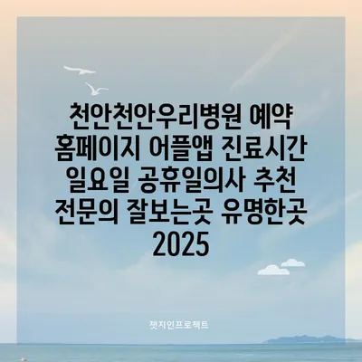 천안천안우리병원은 예약 홈페이지와 어플앱을 통해 보다 편리하게 진료를 예약할 수 있는 시스템을 알려알려드리겠습니다. 특히 진료시간을 엄수하여, 일요일과 공휴일에도 진료를 받을 …