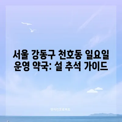 서울 강동구 천호동 일요일에 문여는 약국 설 추석 약국 가이드 서울 강동구 천호동 일요일에 문여는 약국에 대한 심층 가이드를 제공합니다. …