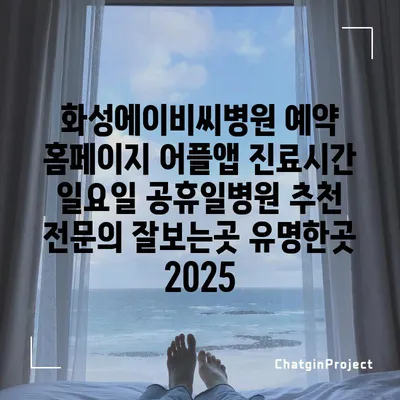 화성에이비씨병원은 예약 홈페이지와 어플 앱을 통해 편리하게 진료를 받을 수 있는 병원입니다. 진료시간은 평일에는 물론, 일요일과 공휴일에도 운영되고 있어 바쁜 …