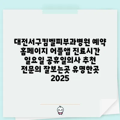 대전서구킴벨피부과병원은 예약 홈페이지와 어플앱을 통해 간편하게 진료를 받을 수 있는 곳입니다. 진료시간은 주중에는 물론, 일요일과 공휴일에도 운영되어 바쁜 일상 속에서도 …
