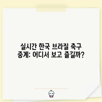 한국 브라질 축구중계 실시간 시청하기 한국 브라질 축구중계 실시간 시청하기에 대한 모든 정보를 제공합니다. 생중계 채널, 일정 및 관전 포인트까지 …
