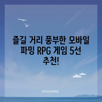 파밍RPG 즐길거리 풍부한 모바일 게임 추천 모바일 게임 중 파밍RPG는 사냥, 캐릭터 육성, 클랜 활동 등 다양한 즐길거리를 제공합니다. 이 …
