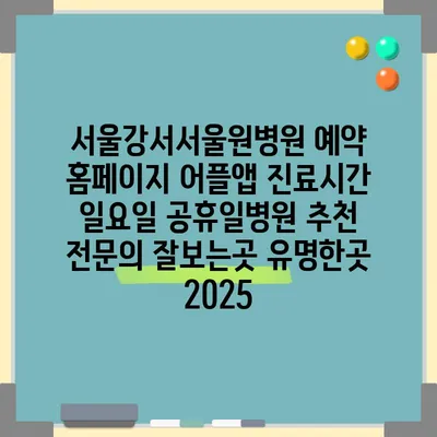 서울강서서울원병원은 2025년에도 신뢰받는 의료 서비스를 제공하는 곳입니다. 예약은 홈페이지와 어플을 통해 간편하게 진행할 수 있으며, 진료시간도 유연하게 마련되어 있어 일요일 …