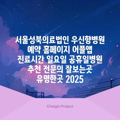 서울성북의료법인 우신향병원은 예약 홈페이지와 어플앱을 통해 간편하게 진료 예약을 할 수 있는 곳입니다. 이 병원의 진료시간은 평일뿐만 아니라 일요일과 공휴일에도 …